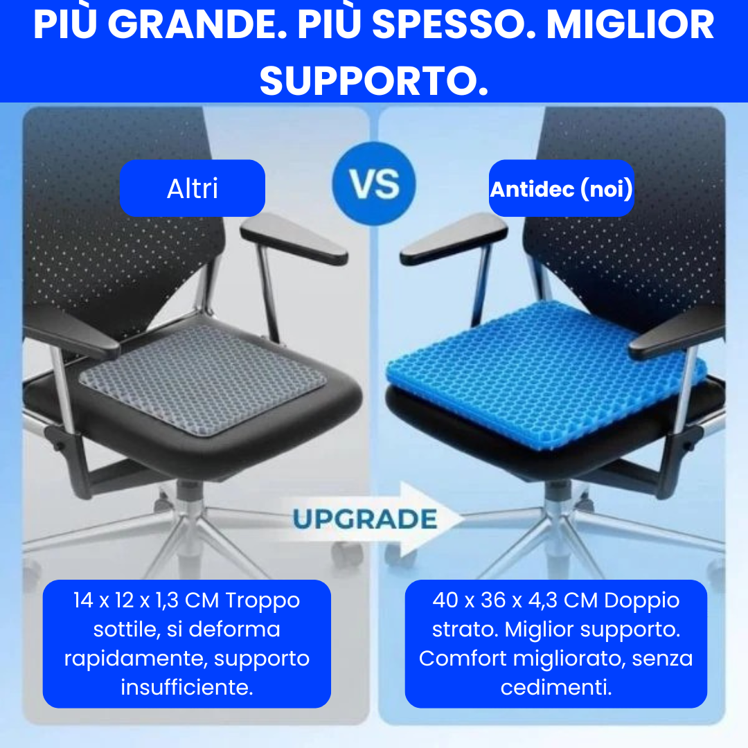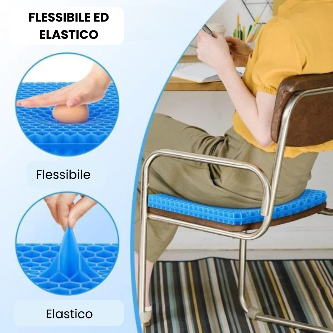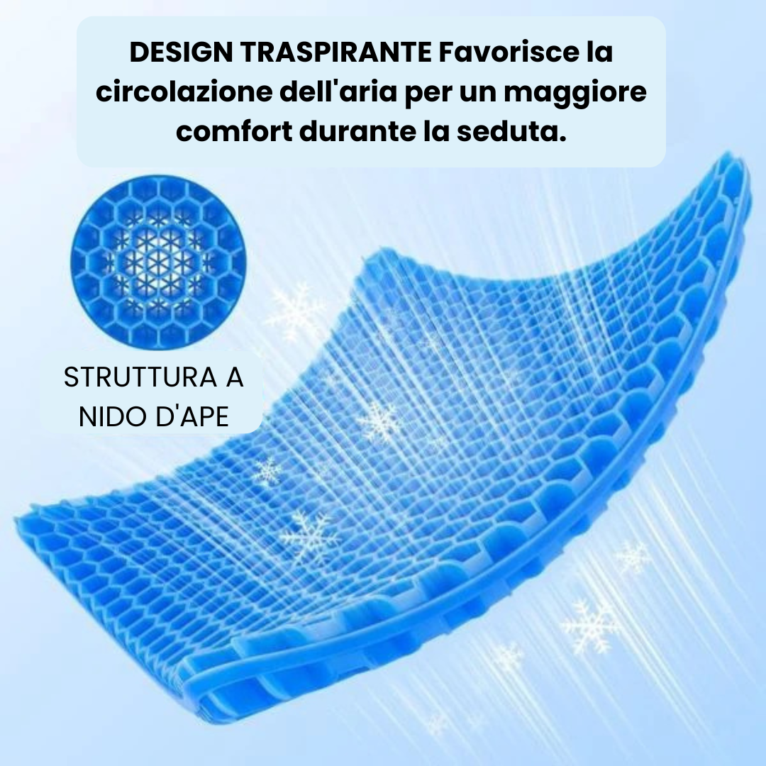 La struttura a nido d'ape consente una distribuzione uniforme del peso, riduce i punti di pressione (in particolare sul coccige) e favorisce la circolazione dell'aria per mantenerti fresco, anche dopo diverse ore di seduta.