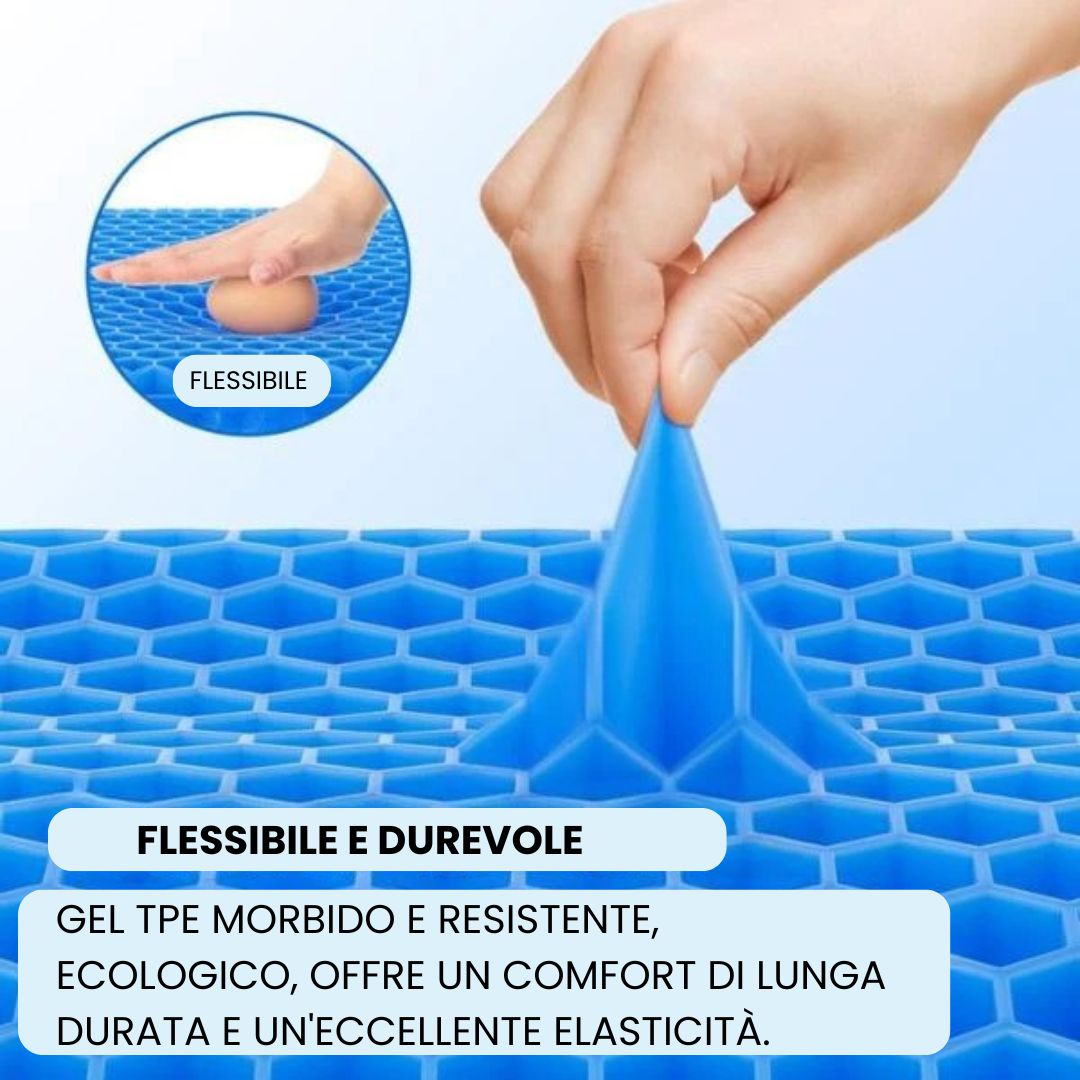 - Igiene massima: A differenza dei comuni cuscini in gommapiuma, il gel non assorbe sudore o cattivi odori e non favorisce la proliferazione di acari.